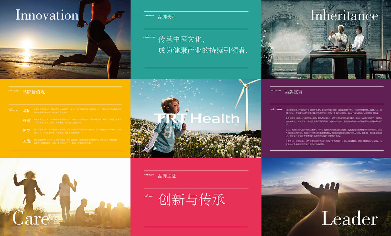 通过对原有品牌架构的梳理,为了适配新的品牌战略,我们主张以不同的产品系列针对不同的用户群,输出不同的价值认知,建立子品牌协同发展集团化品牌架构打造。使一个品牌统领一个品类,在消费者心智中创建强势的品牌印记。当前品牌设计总体风格趋势为年轻情感化、轻松扁平化、彻底简单化,而同仁堂健康还需要注重中文识别性,从这四大出发点进行思考,并且为了进一步强化同仁堂健康的东方现代风格的定位,决定采用更浅的红色作为主色,辅助色则采用从传统中华元素中抽离出来的更大胆艳丽的色彩。 -