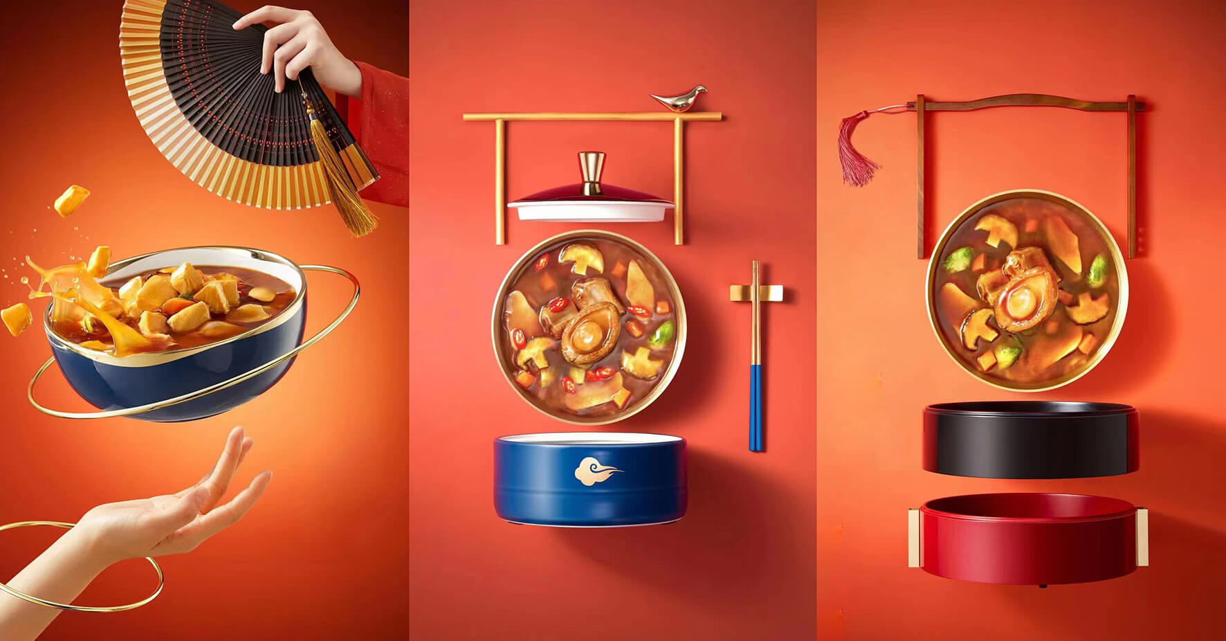 鲜明的符号可以带给消费者更为干净的视觉,清晰明确地传递信息本次标识提升;张珍记CHEUNG CHUNKE在原来的标识字体上使用更现代化字体,运用形态简洁-线性特征建立均衡的视觉美感,使标志图形比单纯使用原始字体造型具有更强的表现力;并且我们保留张珍记原有的香港元素,采用相对对称的设计手法,与港式佛跳墙产生更直接的视觉联系。