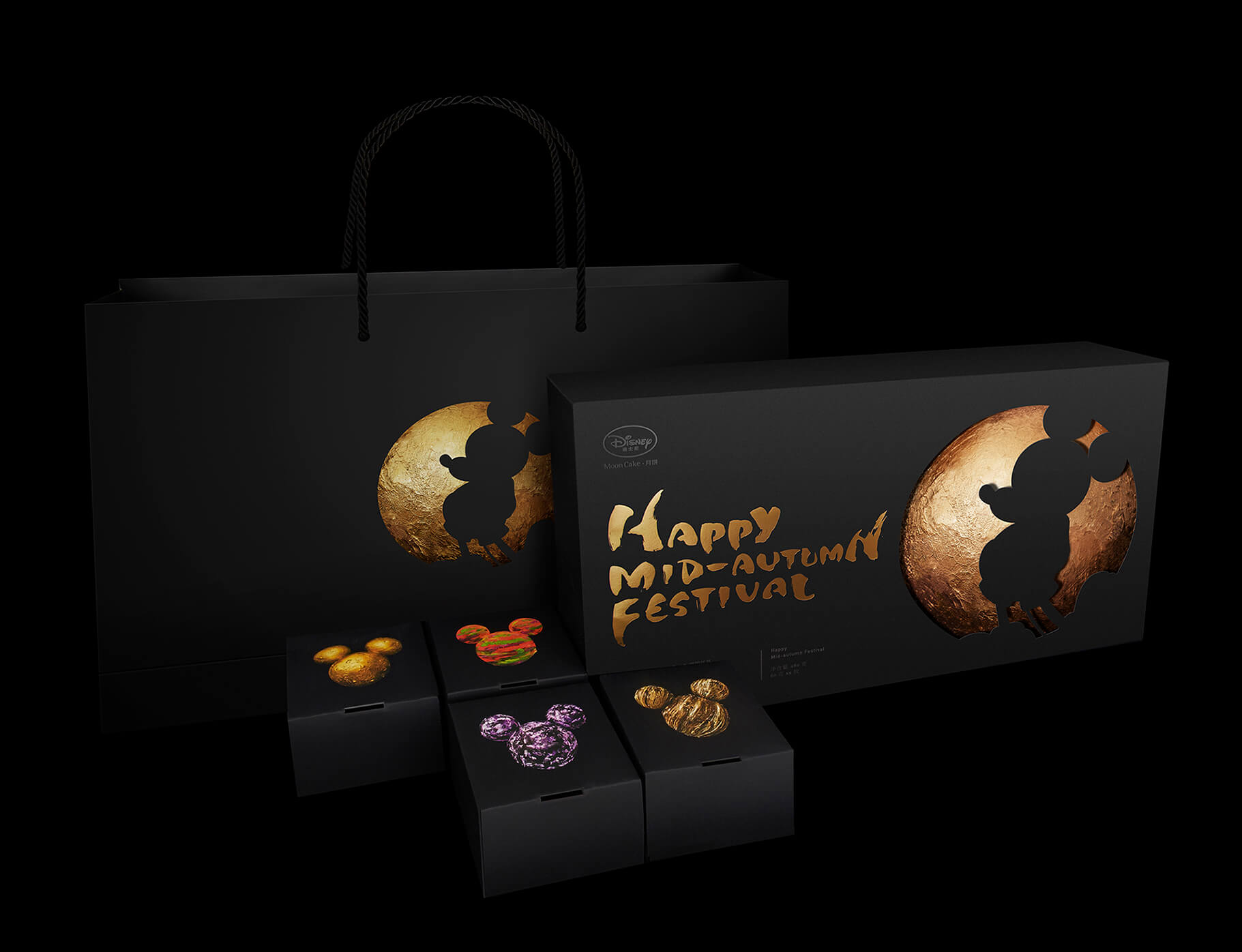 谁说红色奢华装非得是月饼标配?经历一番头脑风暴,黑皮月饼的概念华丽丽地出炉了黑皮恰好与谐音,我们设想,人类所追求的快乐,不只是众人的狂欢,亦是喧嚣后归于宁静,一如黑色的纯粹。所以,快乐可以是黑色的,快乐的月饼是黑皮的!因此,在外包装和饼皮材料上,大胆启用黑色作为主色调。漆黑既是挂着皎洁明月的夜空的色彩,又是品质感的象征。以黑色为底,不同月饼的盒子表面展示了月亮由缺而盈的旅程。如此一来,看似与中秋佳节最不相称的黑色,却最能恰如其分地诠释出月有阴晴圆缺的人生哲理。 -